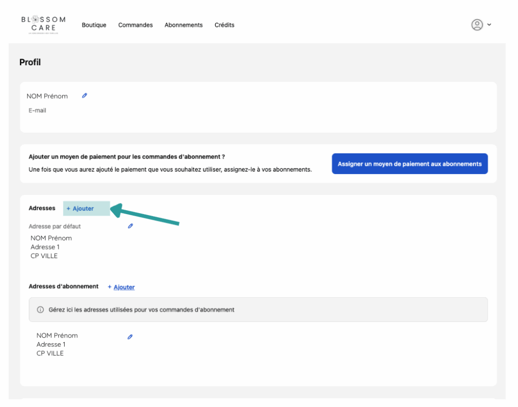 - Cliquez sur “Ajouter une adresse”