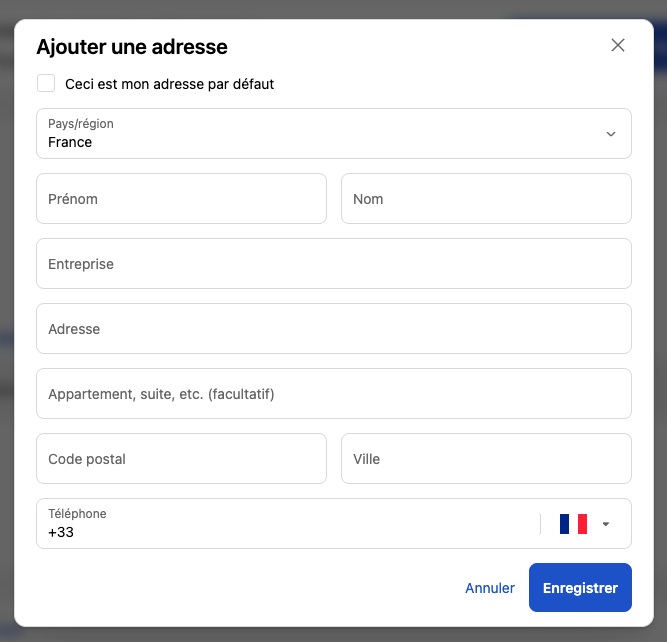 - Shopify vous propose vos adresses enregistrées